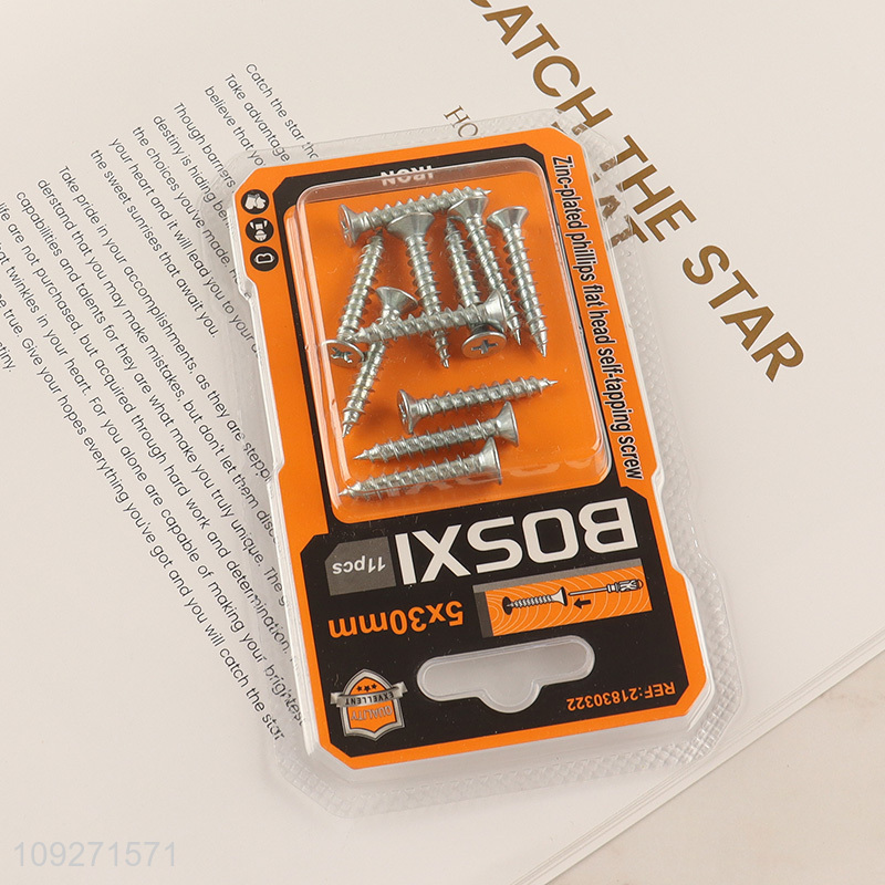 Online wholesale 5*30mm 11pcs zinc-plated phillips flat head self-tapping screws