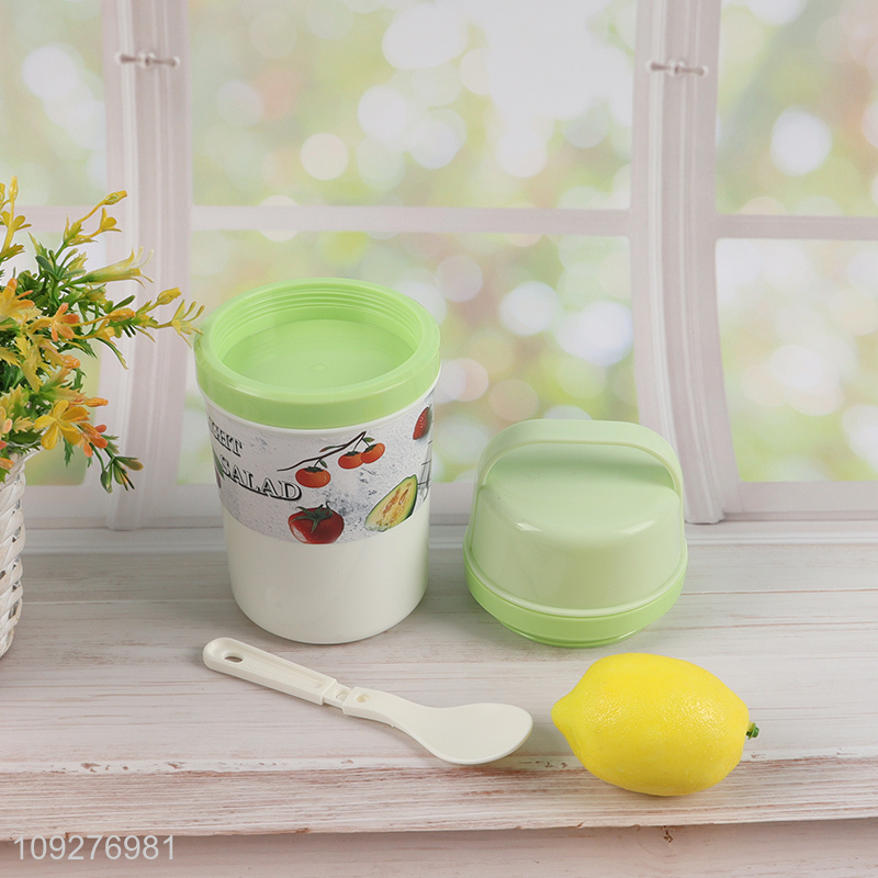 Online wholesale portable plastic food container salad cup with handle