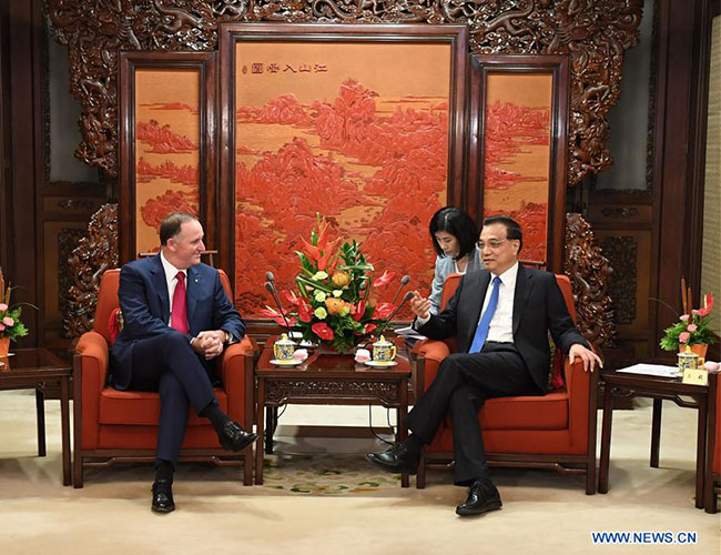 Li made the remarks while meeting with New Zealand's former Prime Minister John Key.
